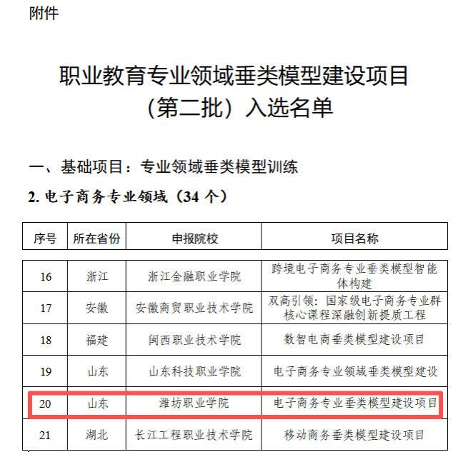 近日,教育部职业教育发展中心公布了职业教育专业领域垂类模型建设项目(第二批)入选名单,bv伟德申报的电子商务专业垂类模型建设项目成功入选专业领域垂类模型训练基础项目。