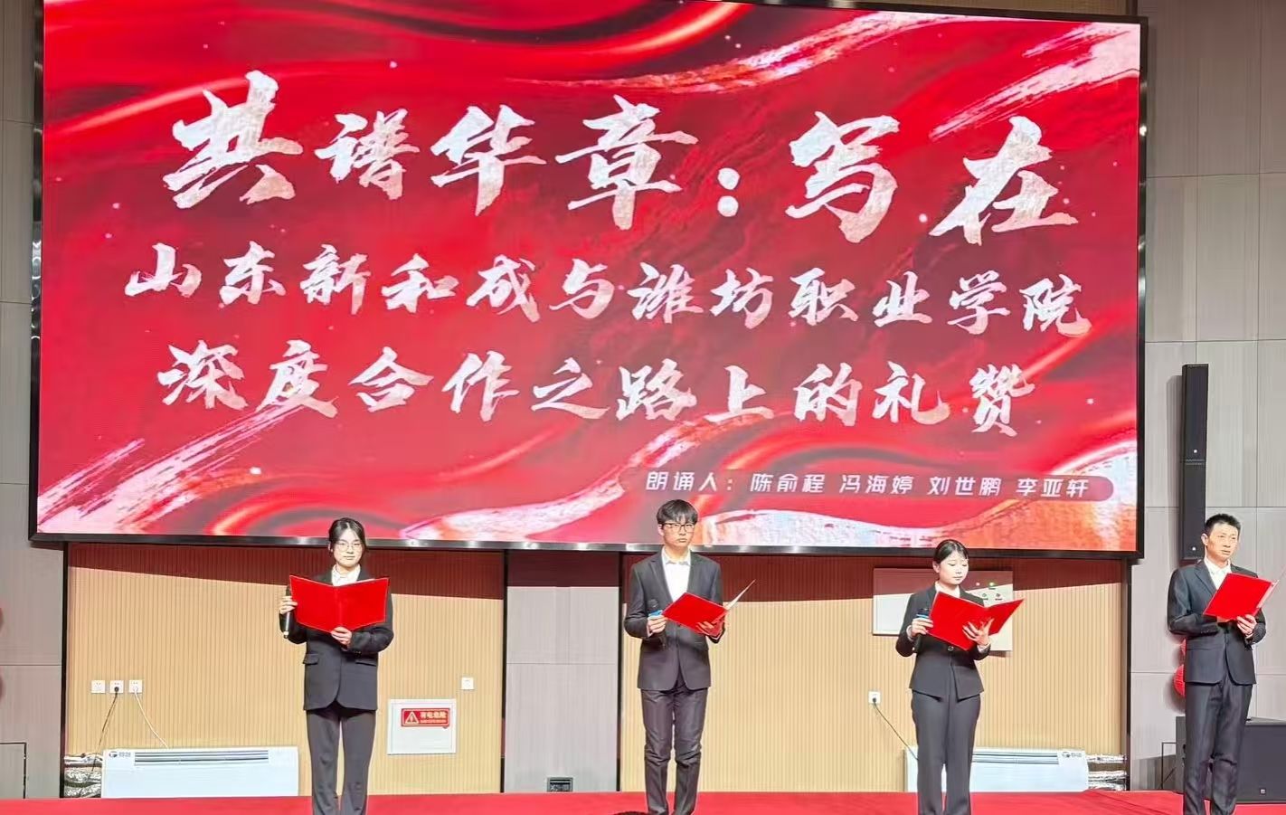 bv伟德与山东新和成合作历史悠久、成果丰硕。自2010年起先后开展定向班人才培养、国家级现代学徒制试点、现场工程师培养等人才培育项目,培养400余名毕业生到企业就职,占山东新和成员工总数近10%,部分毕业生已经成长为技术骨干和项目负责人,为企业发展提供了强大的人才支撑。校企双方共建环渤海绿色化工应用技术协同创新中心、化工“双师型”教师培养培训基地、全国石油和化工行业大学生实习示范基地、山东省精细化工行业产教融合共同体、精细化工产业学院、实践中心等产教融合平台,有力推动校企合作走深走实。化学工程学院师生通过《共谱华章:写在山东新和成与bv伟德国际1946深度合作之路上的礼赞》深情回顾了校企双方的合作历程,引起参会企业领导员工的共鸣。