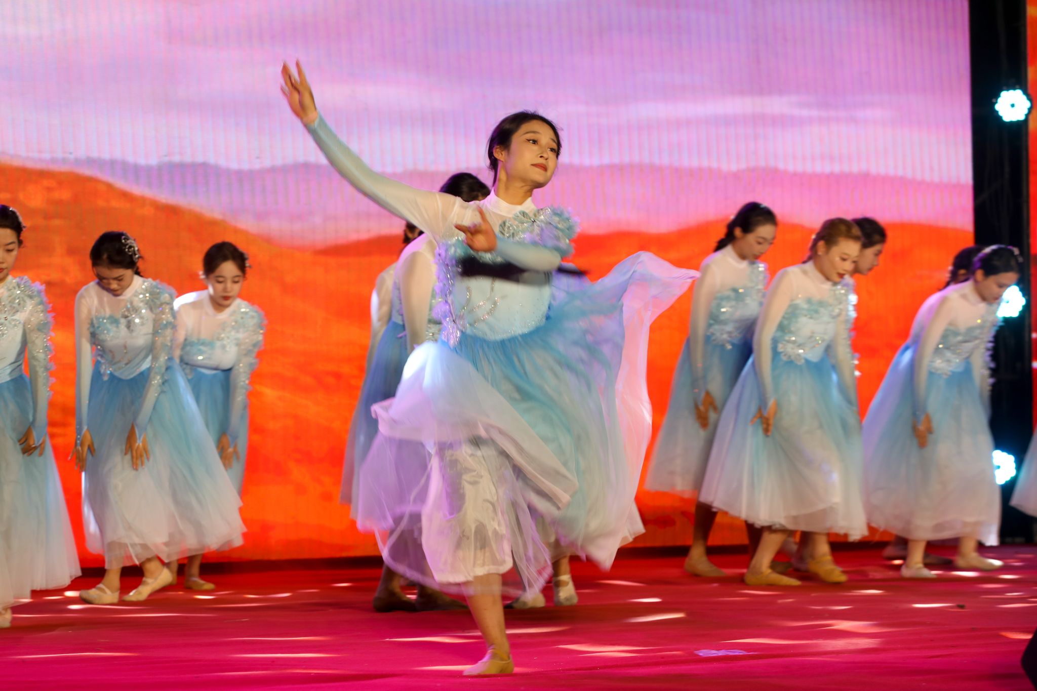 演出现场,璀璨的灯光与荧光棒交相辉映,欢呼声与呐喊声响彻操场上空。歌舞、朗诵、武术等多种形式将潍职人爱国、爱校、爱家的情感充分展现。古典与现代、刚劲与柔美、激昂与沉稳的完美结合,为观众们呈现了一场精彩纷呈的视听盛宴。