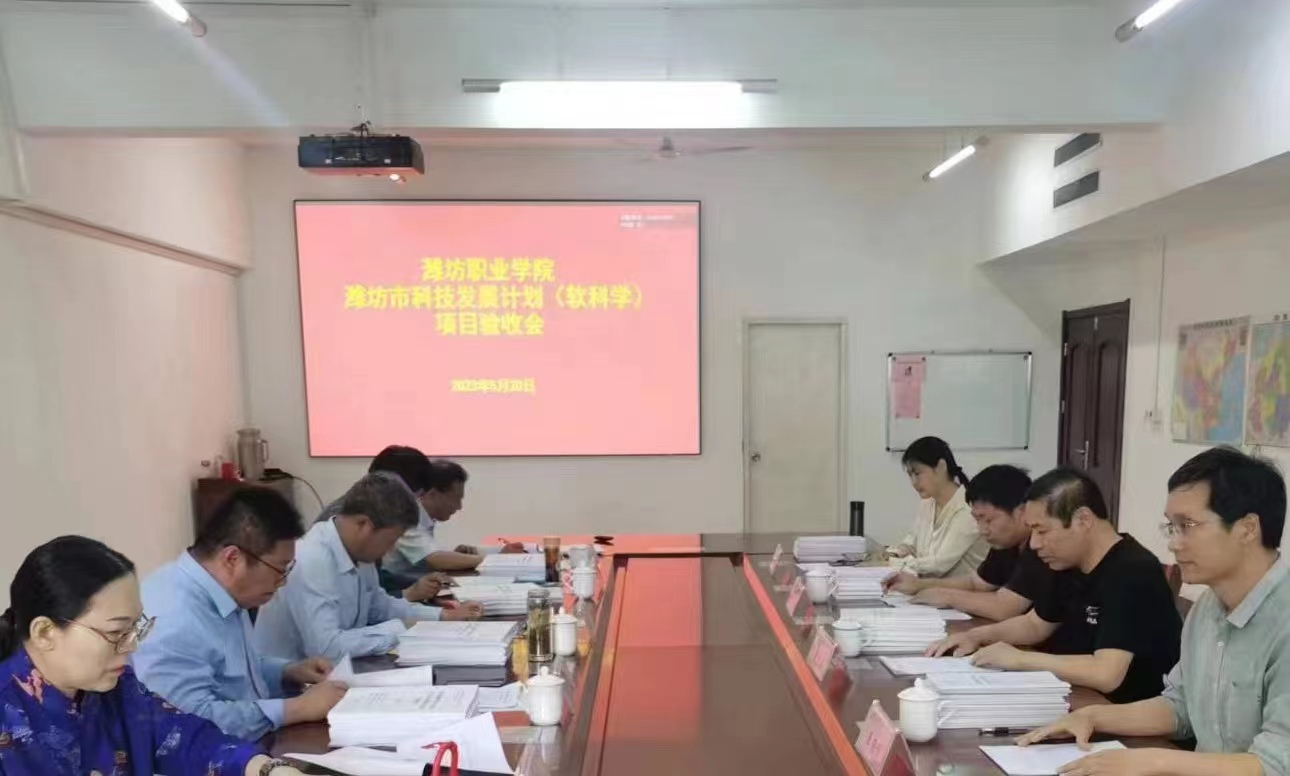 5月20日,潍坊市科技局组织来自潍坊医学院、山东交通职业学院、山东畜牧兽医职业学院、山东经贸职业学院、新联谊会计师事务所的技术、管理和财务审计专家,组成验收专家组,在奎文校区11号楼3楼会议室,对bv伟德承担的2020年度、2021年度潍坊市科技发展计划(软科学)项目进行了验收。潍坊市科技局政策法规科与创新体系建设科科长董洪涛主持会议,学院科技处负责人和项目组成员参加了验收会,14个项目顺利通过验收。