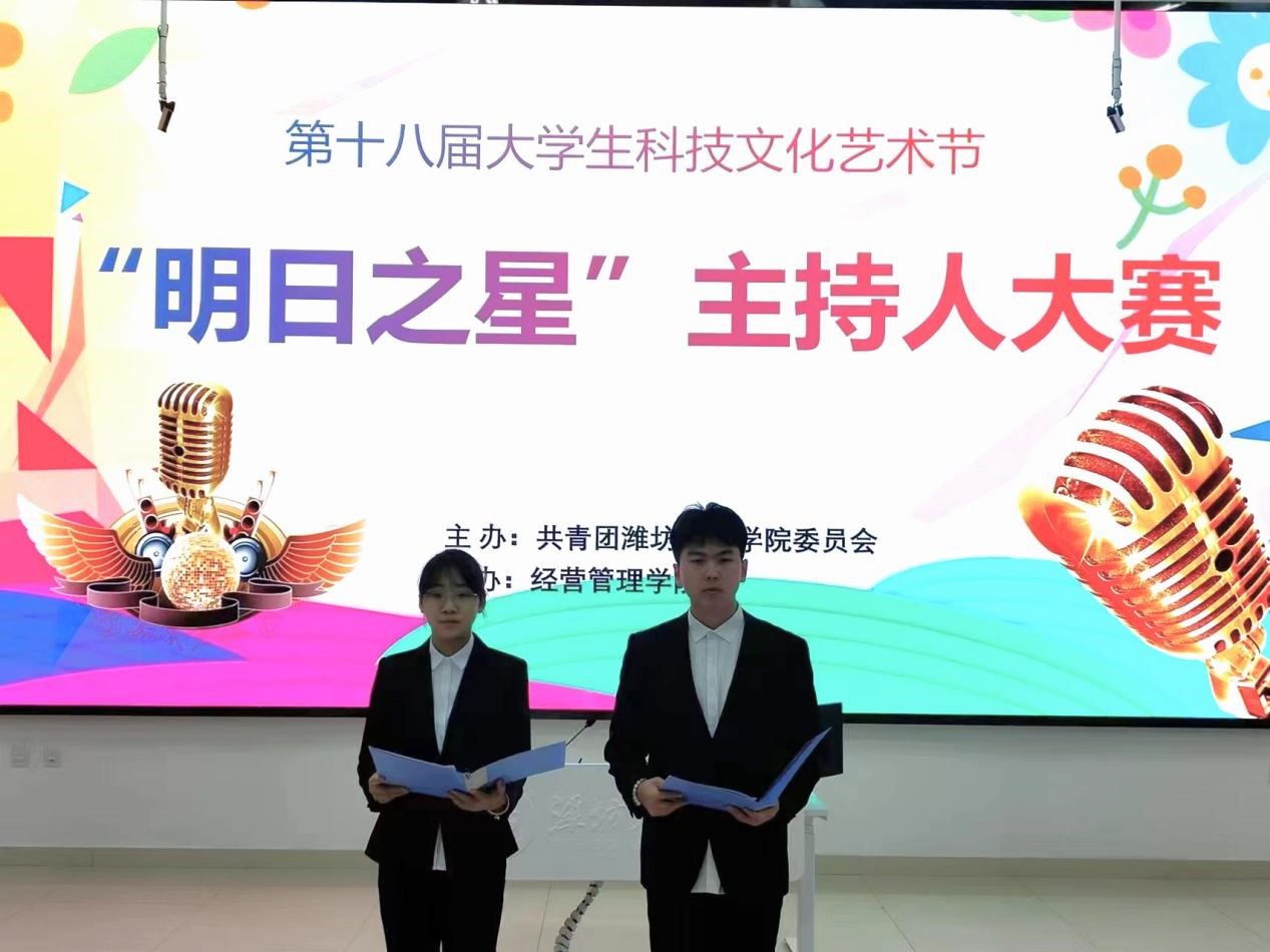 为丰富校园文化生活,提高bv伟德学子的语言运用能力,营造良好的语言氛围,由学院团委主办,经营管理学院承办的第十八届大学生科技文化艺术节之“明日之星”主持人大赛于4月24日在智泽2号楼A117室圆满落幕,来自各二级学院100余名学生代表参加。