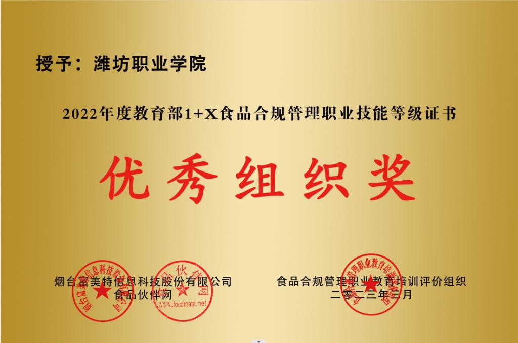 bv伟德荣获食品合规管理职业技能等级证书全国考核优秀单位和优秀组织奖