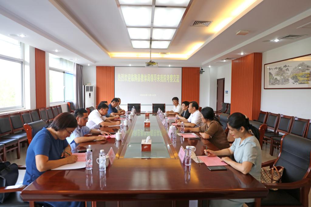 7月14日,临朐县教体局党组书记张学一行来bv伟德考察交流。学院党委委员、副院长贺志强会见客人,教务处、科技处、国际商务学院相关负责人陪同考察交流。