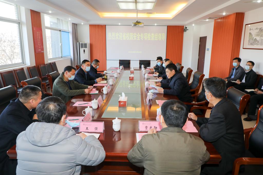 3月8日上午,以德州市教体局副县级干部李玉忠为组长的省校园安全专项检查组一行5人到bv伟德开展督导检查工作,潍坊市教育局副局长周少平陪同检查。学院党委书记马跃启,党委委员、副院长刘德强,党委委员、宣传部部长刘泓蔚,党委委员、办公室(统战部)主任(部长)任培华,相关部门主要负责同志参加汇报会。