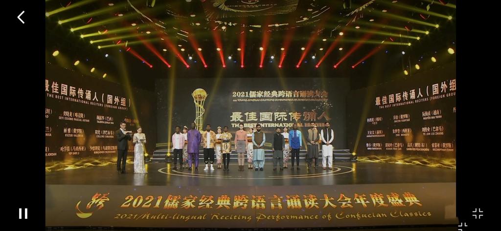 bv伟德留学生获2021儒家经典跨语言诵读大会“最佳国际传诵人”称号