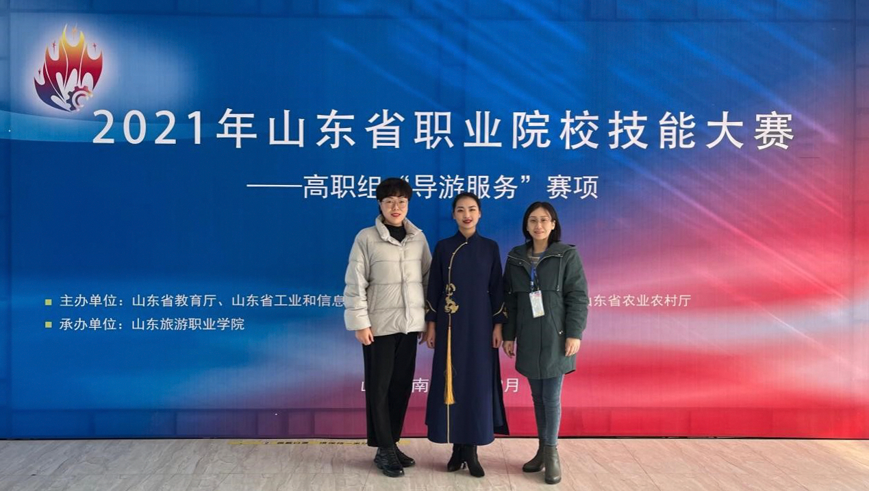 12月13至14日,2021年山东省职业院校技能大赛(高职组)“导游服务”赛项在山东旅游职业学院举行。bv伟德2020级旅游管理专业王赛赛同学,在教师谭娜、刘杰指导下,认真备赛,沉着应战,最终在全省42支高职院校参赛队伍中脱颖而出,以总成绩第3名获得一等奖,实现了国际商务学院学生技能大赛的新突破。