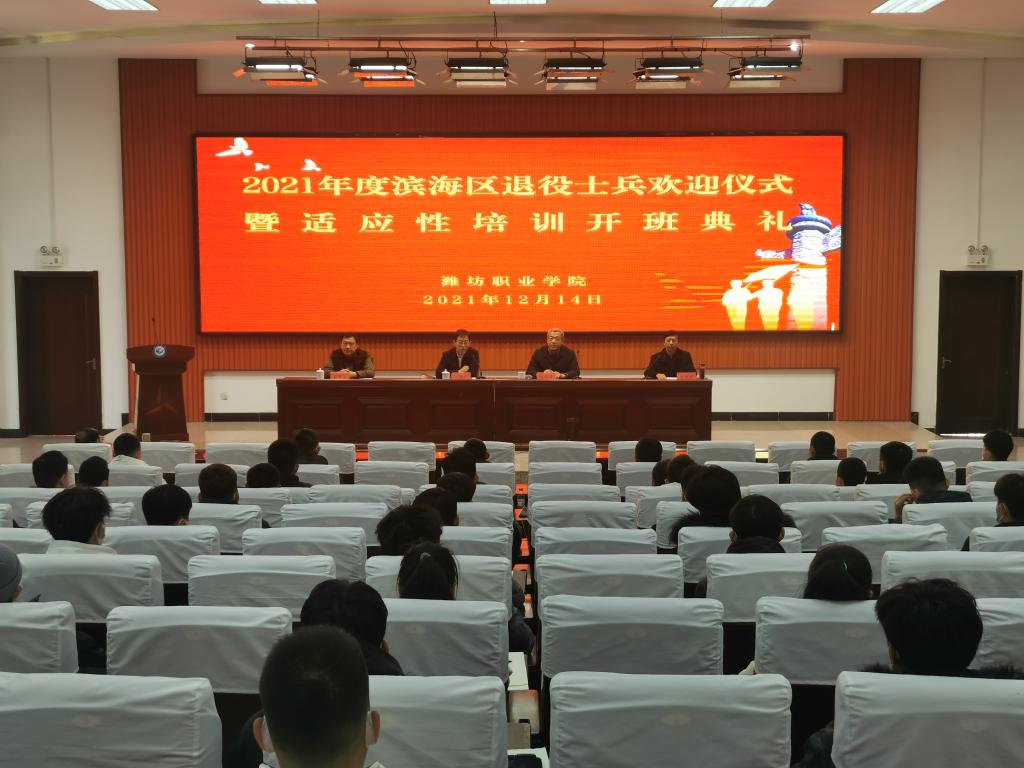 12月14日上午,2021年滨海区退役士兵欢迎仪式暨适应性培训开班仪式在学院清泽楼报告厅举行。滨海区发展软环境保障局党组书记、局长王建庆及退役军人服务中心、继续教育学院负责同志出席了开班仪式。潍坊市各县市区退役士兵代表及志愿入伍学生代表60余人参加本次培训。