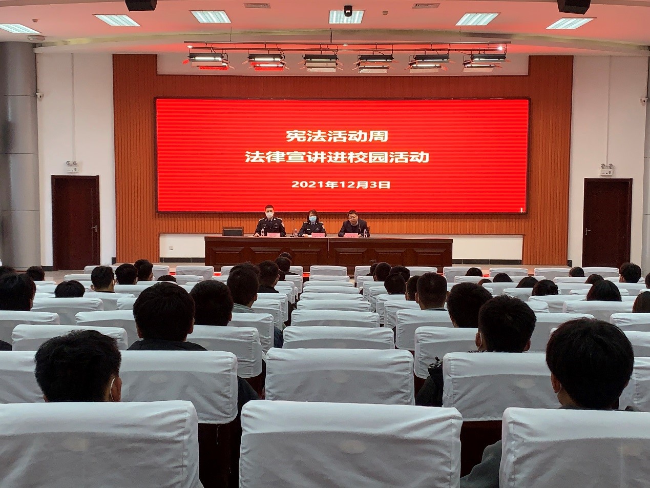 在第八个宪法宣传日到来之际,为增强学生法制意识,提高辨别能力和安全防护能力,12月3日下午,滨海区公安分局法制大队一中队中队长杨元元、央子海岸派出所民警张刚警官在清泽楼报告厅为bv伟德学生作了一场生动的校园安全与法制教育讲座。滨海校区各二级学院140余名学生参加讲座。