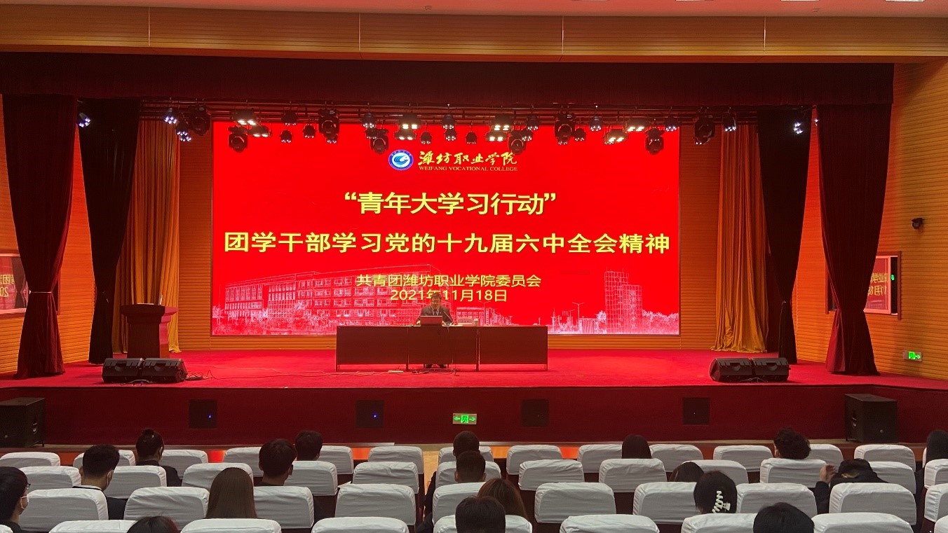 11月18日下午,“青年大学习”行动bv伟德国际1946团学干部党的十九届六中全会精神主题学习会在滨海校区图书馆报告厅举行。团委主要负责同志、校学生会及各二级学院学生会分会全体成员、青年团员代表等100余人参加学习。