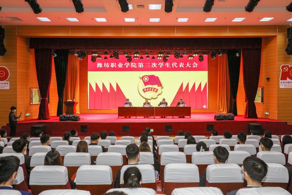 11月18日,bv伟德国际1946第三次学生代表大会在滨海校区图书馆报告厅召开。学院党委副书记、副校长桑福岭,团委学生工作处负责同志、各二级学院团总支负责同志、团委工作人员和143名正式学生代表参加会议。