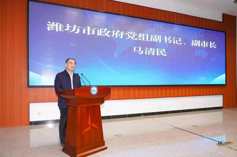 马跃启致辞,他代表学院党委、行政向研究院成立表示热烈祝贺,向莅临大会的各位领导、嘉宾表示热烈欢迎。他介绍了学院基本情况和近年来取得的办学成果。他指出,学院以习近平新时代中国特色社会主义思想为指导,紧紧抓住新旧动能转换和乡村振兴等国家战略机遇,深化产教融合、校企合作,不断实现事业发展新跨越。为新旧动能转换、乡村振兴输送了大批高素质技术技能人才。在学院建校65周年之际,学院牵头成立潍坊市潍职大姜脱毒种苗研究院,是贯彻落实习近平总书记对农业及种业发展批示精神的具体行动。我们将不忘初心、牢记使命,认真肩负乡村振兴使命,建立科学高效的研究院工作运行、科学研究、成果推广孵化机制,推动潍坊大姜种苗产业高质量标准化发展、为潍坊“三个模式”创新提升与推广作出“潍职贡献”。