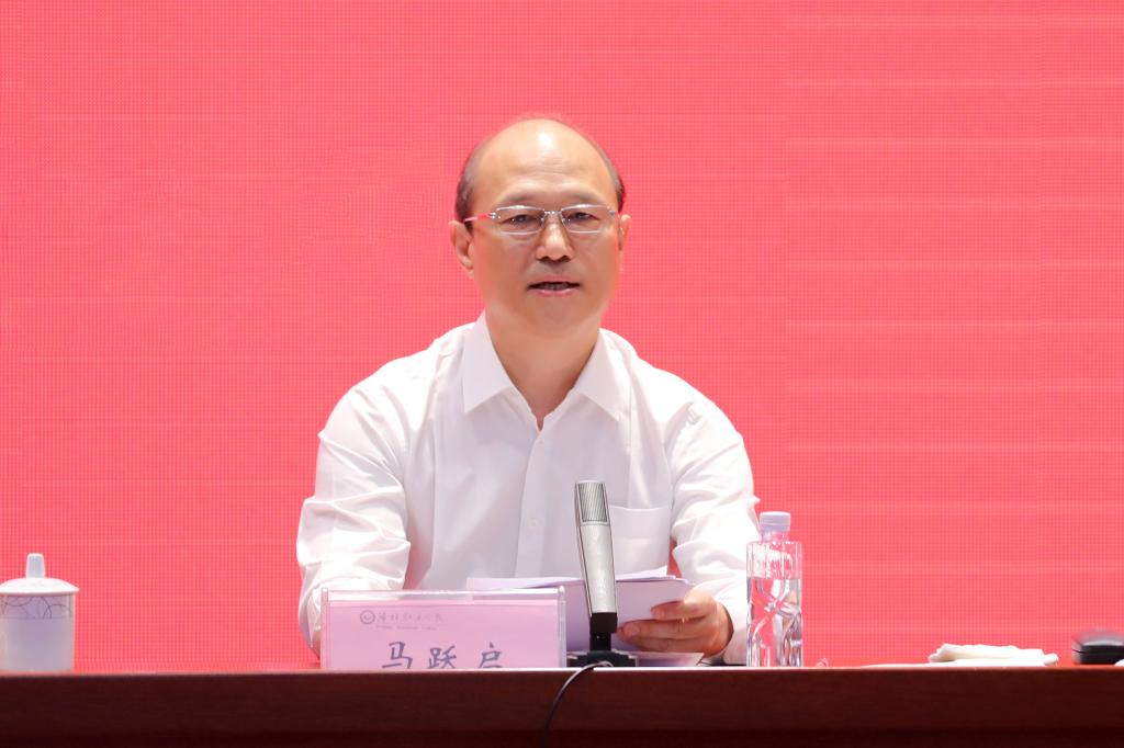 马跃启讲话,他代表学院党委行政向全体教师致以节日的诚挚问候。他全面回顾肯定了过去一年来学院取得的主要成绩、荣誉和老师们的辛勤付出,深入分析了学院发展面临的形势任务,展望了学院的美好前景,并就加强教师队伍建设,强化教学中心地位讲了四点意见:一是加强师德师风建设,让有信仰的人教书育人。二是加强教师教育培训,让优秀的人教书育人。三是不断提升教师地位待遇,让教师静心教书育人。四是加强党对教师工作的领导,让政策强力保障教书育人。