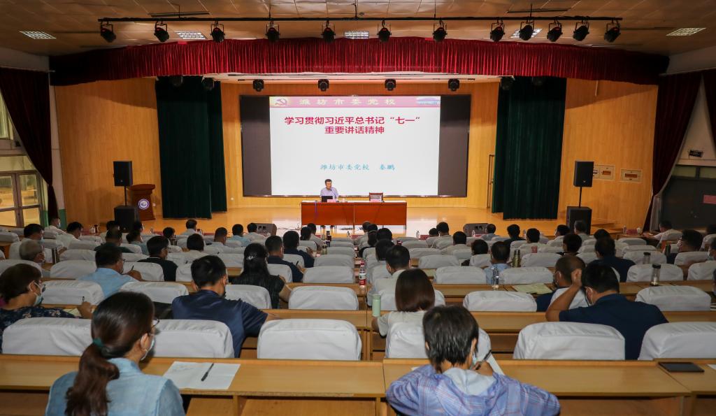 8月23日上午,学校在奎文校区16号楼报告厅举办学习贯彻习近平总书记“七一”重要讲话精神专题宣讲报告会。潍坊市学习贯彻习近平总书记“七一”重要讲话精神宣讲团成员、中共潍坊市委党校党史党建教研部副主任、副教授秦鹏作题为《学习贯彻习近平总书记“七一”重要讲话精神》的专题报告。学校党政领导班子成员、中层正职、主持部门工作的中层副职、各二级学院正科级干部参加。党委副书记、副校长桑福岭主持报告会。