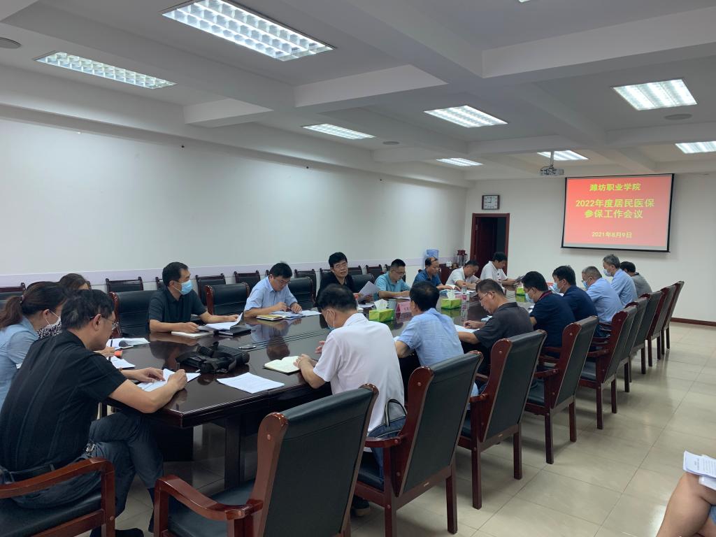 8月9日上午,学校在奎文校区11号楼第二会议室召开2022年度学生参加城乡居民基本医疗保险工作动员会。会议邀请潍坊市医保局于宁波科长、奎文区医保局王和礼主任和郭召杰主任参加,学校副校长刘德强出席会议并讲话,团委学生工作处、招生就业处、后勤服务处、财务处负责同志,思想政治理论课教学部和各二级学院分管负责人、辅导员办公室主任及相关工作人员参加会议。