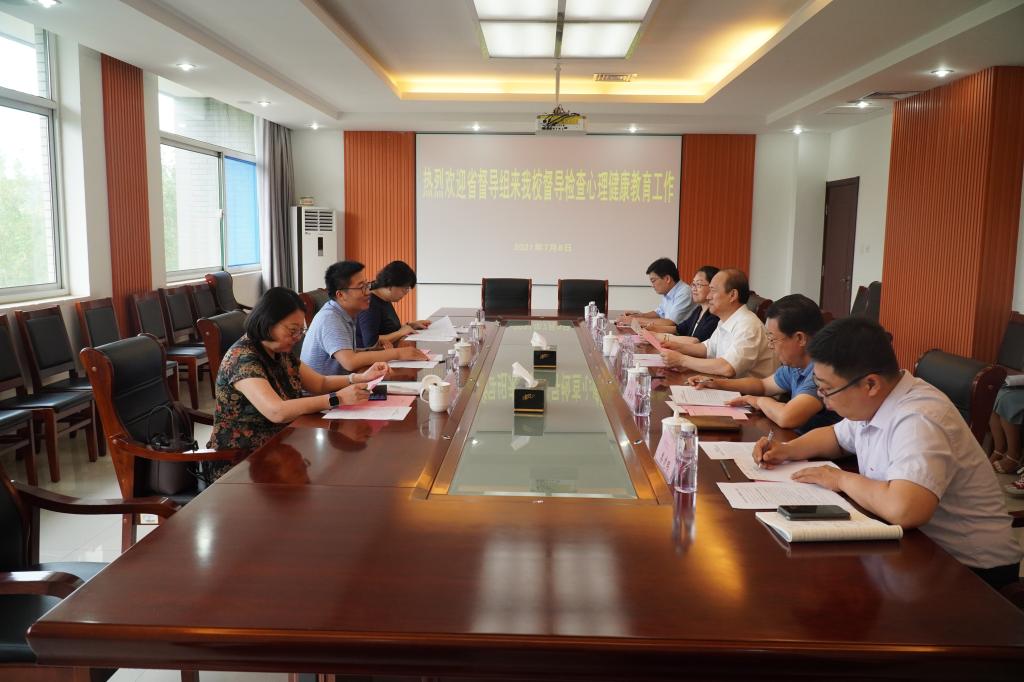 7月8日下午,山东省教育厅思政处处长陈成标率领省学校心理健康教育督导组五组一行3人莅临我校开展心理健康教育工作专项督导检查。学校党委书记马跃启,党委副书记、副校长桑福岭,党委委员、宣传部部长刘泓蔚,学生工作处主要负责同志及相关教师参加督导检查。
