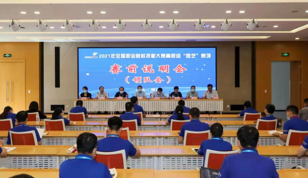 6月18日下午,2021年全国职业院校技能大赛高职组“园艺”赛项赛前说明会在山东(潍坊)公共实训基地举行。赛项专家组组长、苏州农业职业技术学院园林工程学院副院长黄顺,裁判长、北京绿京华生态园林股份有限公司董事长李夺,监督仲裁组组长、黑龙江生态工程职业学院景向欣,学校副校长李瑞昌出席,来自全国各地的28支代表队的领队和指导老师参加了会议。