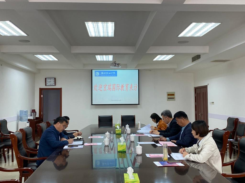 4月16日上午,宏瑞国际教育爱尔兰芒斯特省理工大学中国特别代表刘旭总裁一行2人来校就中爱国际合作项目进行洽谈。国际交流与合作处、国际商务学院、文化创意学院相关负责同志参加了会谈。