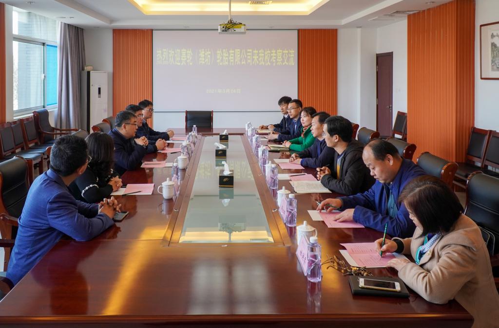 3月24日上午,学校服务包靠企业赛轮集团股份有限公司潍坊分公司总经理赵永刚一行4人到校洽谈校企合作事宜。学校副校长贺志强,服务企业专员,科技处、机电工程学院、汽车工程学院、化学工程学院等相关部门负责人接待了到访人员。