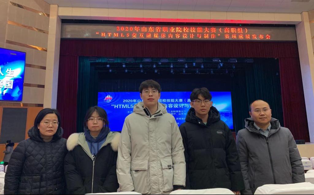 12月16日,2020年山东省职业院校技能大赛高职组“HTML5交互融媒体内容设计与制作”大赛在滨州职业学院举行,全省43所院校参加比赛。信息工程学院王子顺、孟宪文、王俪晓3位同学在指导教师郑伟、冯燕妮的带领下,经过激烈角逐,获得山东省高职组二等奖。