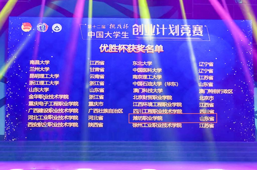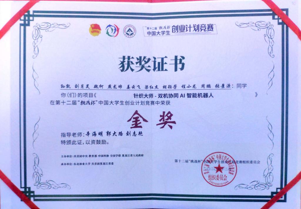 12月9日,第十二届“挑战杯”中国大学生创业计划竞赛全国决赛在东北林业大学落下帷幕,bv伟德孙凯等同学的“针织大师-双机协同AI智能机器人”项目荣获金奖,孟娇等同学的“大自然的化妆师”项目荣获银奖。学院同时获得“挑战杯”全国优胜杯,全国仅10所高职院校获此殊荣,是二十多年来山东省唯一获得“挑战杯”中国大学生创业计划竞赛金奖的高职学校。辛海明、郭大路等老师荣获全国优秀指导老师奖。