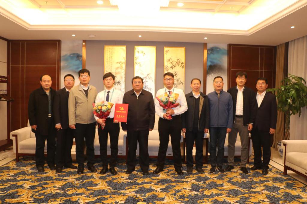 11月21日下午,bv伟德参加第六届中国国际互联网+大学生创新创业大赛国赛金奖项目团队载誉归来,学院院长王家爱、副院长李瑞昌、刘德强,办公室(统战部)主任(部长)任培华接见了获奖选手孙凯、刘月昊,并进行了座谈。创业教育学院、机电工程学院主要负责同志及团队领队、指导教师参加了座谈。