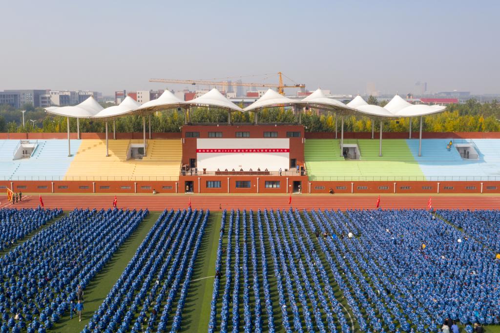 金秋十月,硕果飘香。10月19日上午,学院2020级新生开学典礼暨军训动员大会分别在奎文、滨海校区体育场举行。学院院长王家爱,党委副书记宋桂言,副院长李瑞昌,纪委书记郭晓辉,副院长刘德强,党委委员、组织人事处处长付一明,党委委员、办公室(统战部)主任(部长)任培华等出席并在主席台就坐。学院有关部门和二级学院负责人、辅导员、班主任以及全体新生参加了大会。宋桂言主持会议。