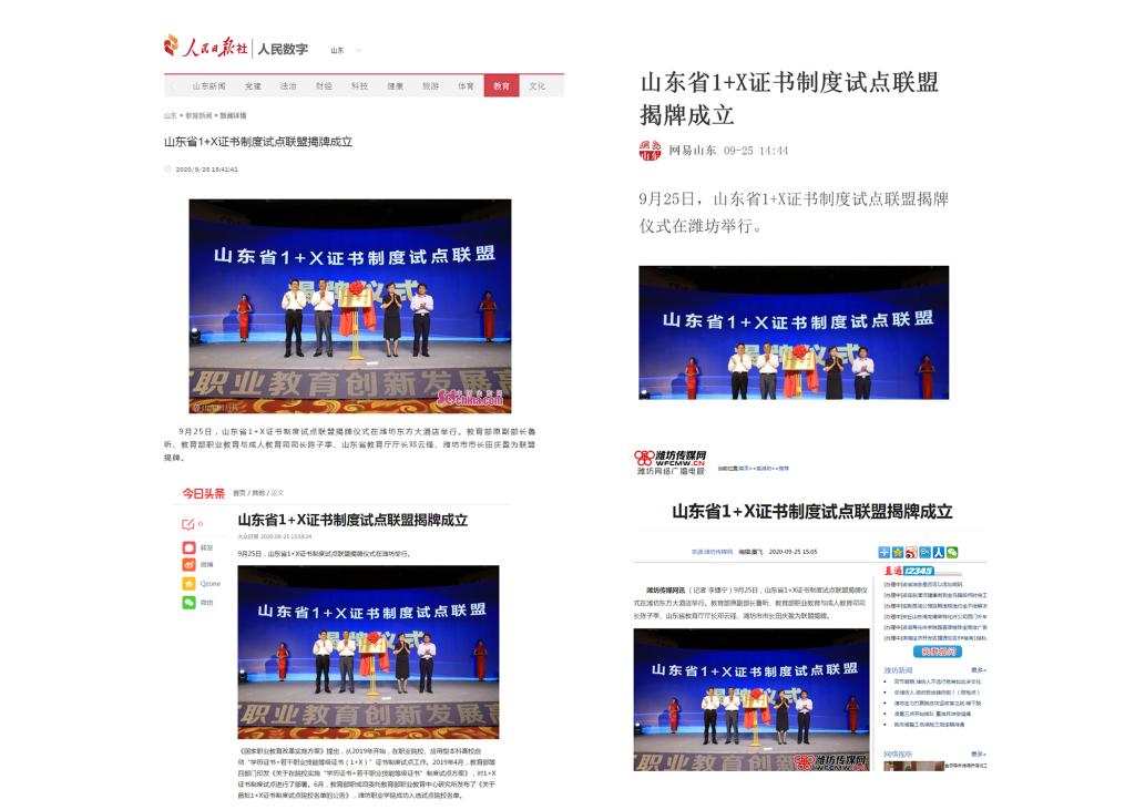 人民网等媒体集中报道bv伟德牵头成立山东省1+X证书制度试点联盟