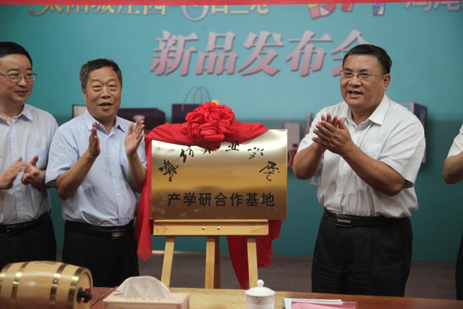 7月28日,bv伟德国际1946产学研合作基地在山东太阳城生物科技有限公司举行揭牌仪式。学院党委书记马跃启、院长王家爱、副院长贺志强,日照市科技局局长杨洪福,日照市科协主席臧新宇,五莲县科技局局长戴梅芳,山东日照尧王集团董事长、总经理王承海,山东太阳城生物科技有限公司总经理张燕等校企政领导出席,学院办公室、科技处(产学研合作中心)主要负责同志参加活动。