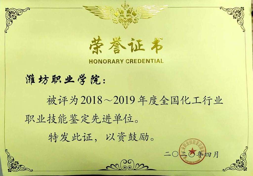 近日,国家化学工业职业技能鉴定指导中心发布2018-2019年度鉴定先进单位和先进个人表彰文件,bv伟德化工行业特有工种职业技能鉴定站荣获全国化工行业职业技能鉴定先进单位,邹芳、张新文两位教师被评为全国化工行业职业技能鉴定工作先进个人。