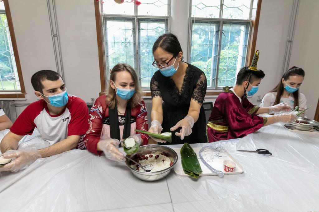 国际教育学院的汉语老师为留学生们讲解了端午节的由来和习俗,并开展了知识竞答和端午剪纸文化活动,为获胜学生佩戴五彩绳和香囊等端午节传统物件。