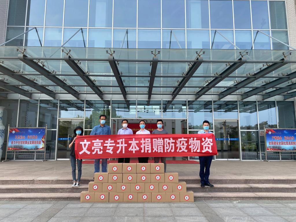 5月25日下午,济南文亮教育培训学校为bv伟德捐赠外科口罩3000片、便携式酒精消毒喷雾800瓶等爱心物资,后勤服务处负责同志出席了捐赠仪式。