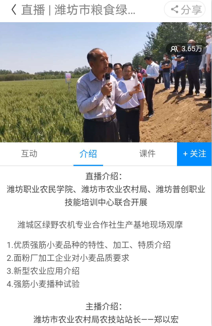 本次培训班采用线上线下直播的方式进行,中农产教(北京)有限公司给予了“云上智农”在线直播平台技术支持,并提前两天在平台做了直播节目预告,面向平台全国600多万注册学员引流和导流。潍坊职业农民学院与市农业农村局联合下发通知,组织全市农技人员和种植业从业人员开展线上收看和学习。