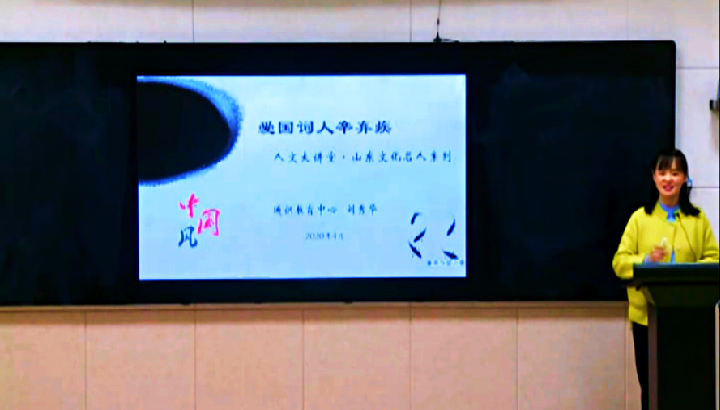 5月7日、8日下午,学院第49场人文素养大讲堂在钉钉网课顺利播放,这是线上“山东文化名人”系列人文讲座的第二场。通识教育中心刘秀华老师作了“爱国词人—辛弃疾”的线上讲座,全院近9000人收看了讲座。