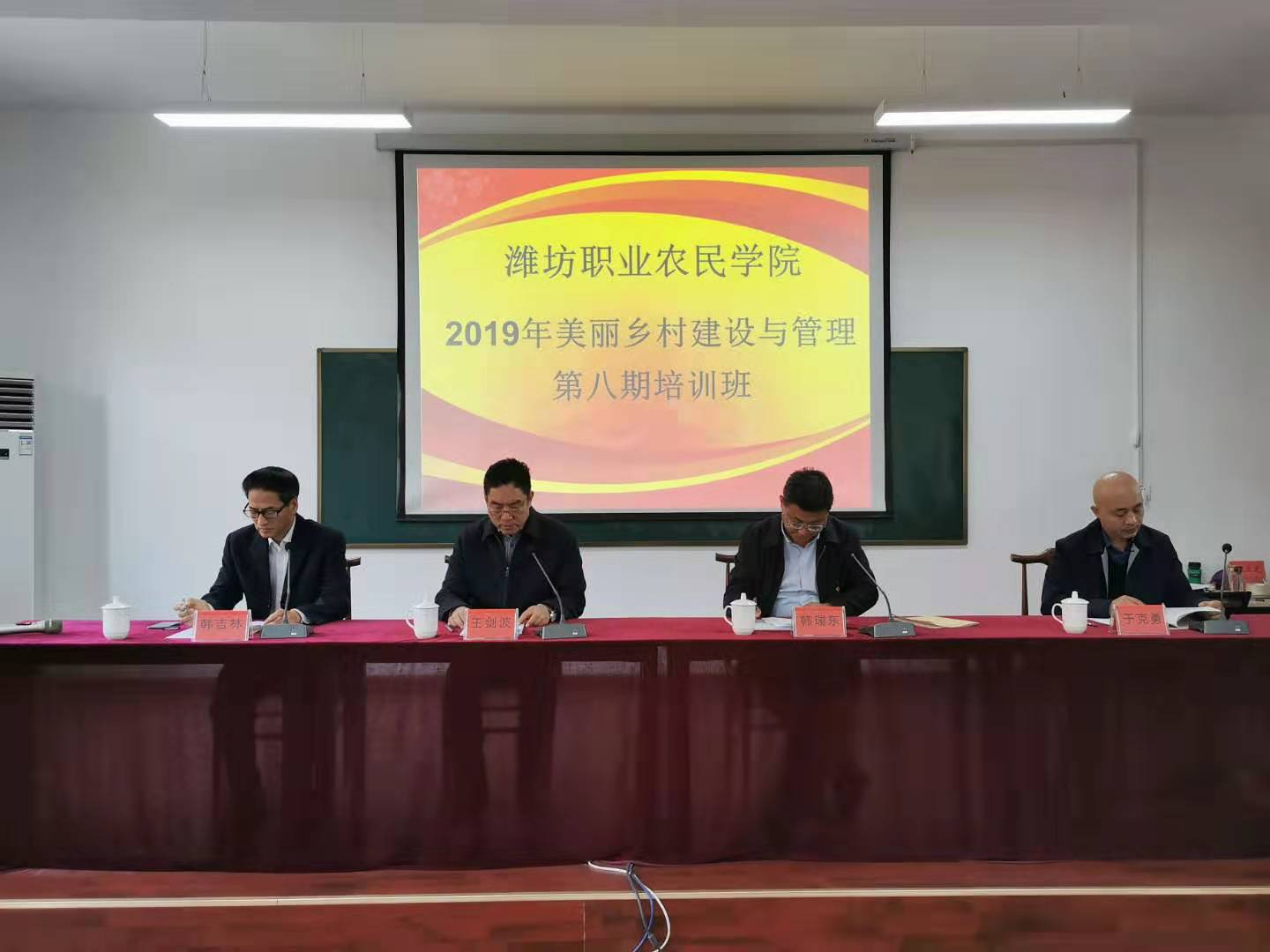 11月7日,由bv伟德国际1946联合青州市政府、潍坊普创职业技能培训中心举办的2019年美丽乡村建设与管理第八期培训班在bv伟德国际1946培训基地开班,青州市委常委、副市长韩瑞东及继续教育学院负责同志出席开班仪式并致辞。来自青州的潍坊市派第一书记、青州市派第一书记、扶贫村两委成员和部分新型经营主体带头人等共计100余人参加了本次培训。