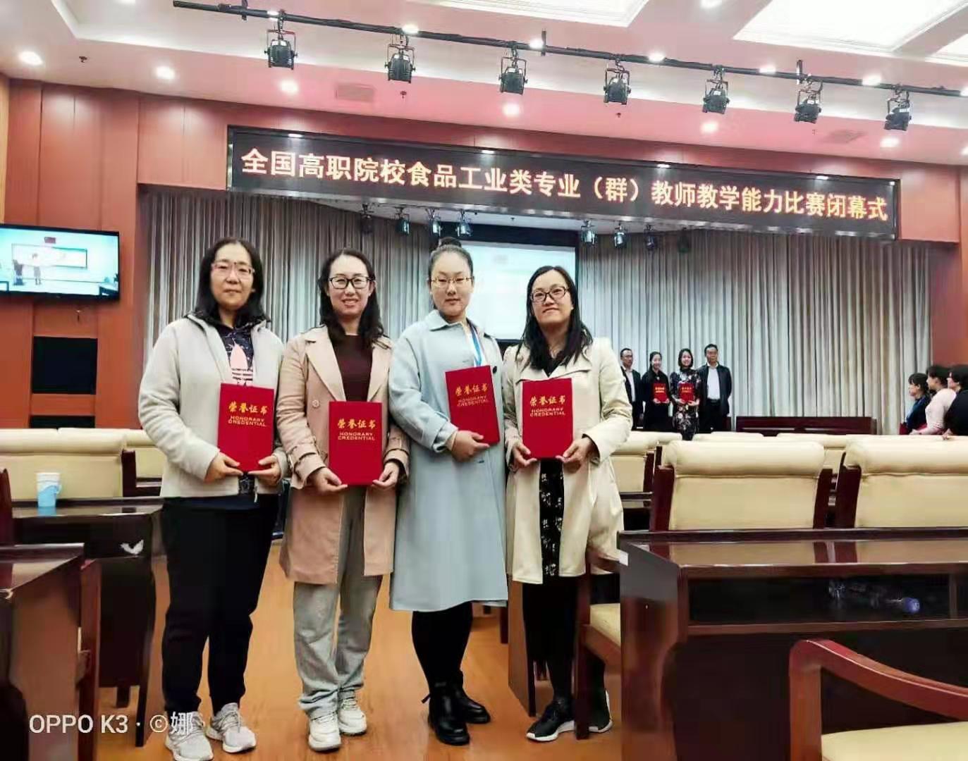 10月21日,2019年全国高职院校食品工业类专业(群)教师教学能力比赛在北京电子科技职业学院圆满结束。bv伟德教师卜令娜、孙显慧、杜冰冰、丁文慧组建的教学团队获二等奖。