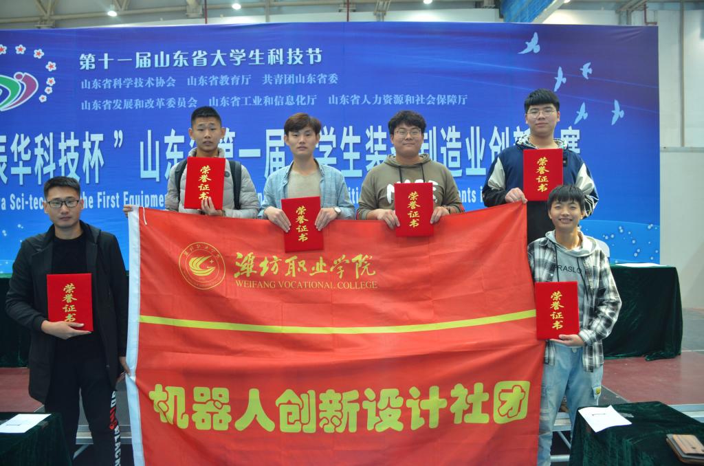 10月18日第十一届山东省大学生科技节暨山东省第一届大学生装备制造业创新大赛在潍坊鲁台会展中心圆满结束,bv伟德““产线替代者”——全自动织毯机”和“六自由度并联平台加编码器位移分析装置”2个项目获得一等奖,“微型耳机MIC智能分选插接系统”等2个项目获得二等奖,“3—RRR平面写字机器人”等6个