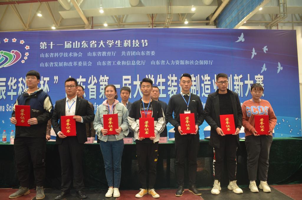 第十一届山东省大学生科技节暨山东省第一届大学生装备制造业创新大赛由山东省科学技术协会、山东省教育厅、共青团山东省委、山东省发展和改革委员会、山东省工业和信息化厅、山东省人力资源和社会保障厅主办六部门共同主办的一项赛事,共有28所本专科院校、280项作品、近1200名学生参赛,最终经过专家初评,52支优秀队伍参加了在鲁台会展中心举办的现场决赛。