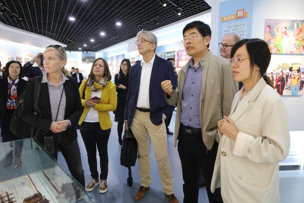 刘德强陪同客人参观了学院校史馆,介绍了学院的历史沿革、办学成果、技能大赛、人才培养、国际交流与合作等概况,观看学院宣传片。随后,进行了座谈交流,刘国庆介绍了我市与阿莎芬堡市结为友好城市的发展历程,该市与潍柴动力在德国的技术合作项目等。Friedbert Rudolf Eder对bv伟德发展及办学成果给予高度评价,介绍了阿莎芬堡市工商会在华相关项目, 希望促进与bv伟德在先进技术转化、教育交流等方面的合作。刘德强介绍了bv伟德专业发展情况、前期与德国合作交流项目等,希望在智能制造类专业、先进技术转化等领域与德国技术类大学开展合作,并借助潍柴动力与德国的技术合作平台,在中外校企合作育人,服务企业“走出去”方面寻找更多合作切入点。
