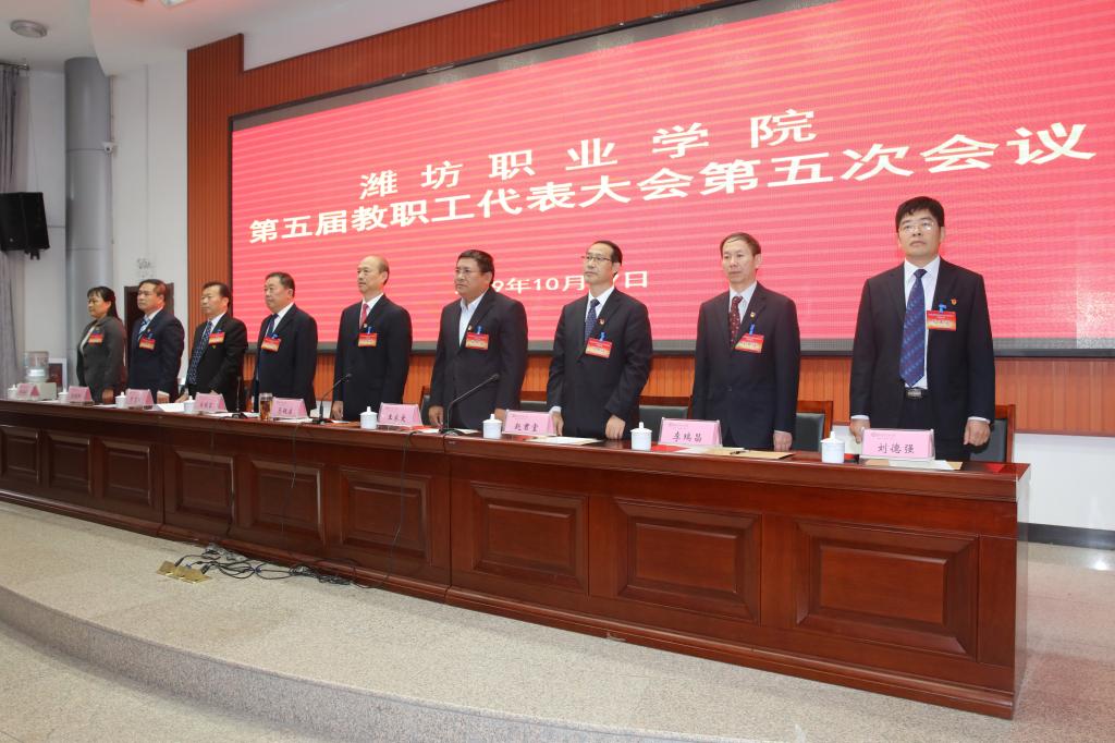 bv伟德国际1946第五届教职工代表大会第五次会议圆满完成各项议程,在雄壮的《国际歌》中落下帷幕。(鞠发营供稿)
