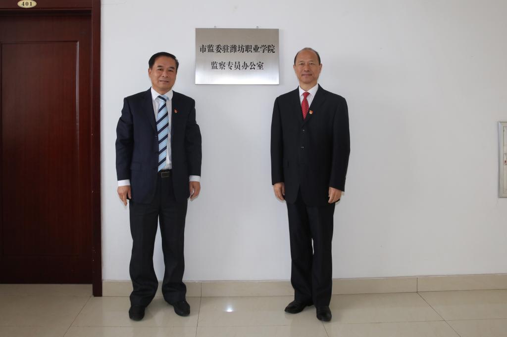 10月16日上午,市监委驻bv伟德国际1946监察专员办公室正式挂牌成立。学院党委书记马跃启,纪委书记郭晓辉共同为市监委驻bv伟德国际1946监察专员办公室挂牌。