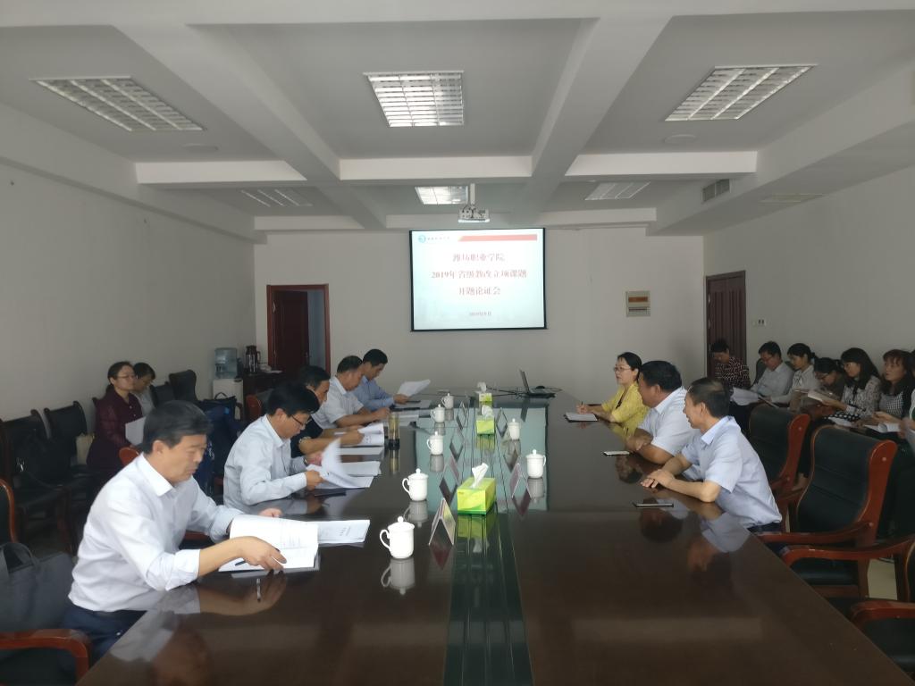 9月21日,根据山东省教育厅《关于公布2019年度山东省职业教育教学改革研究立项项目的通知》要求,bv伟德组织了以王汉忠教授为组长的专家论证组,对2019年立项的11项山东省职业教育教学改革研究项目进行开题论证。院长王家爱、副院长李瑞昌参加了论证会,各项目组成员、教务处相关人员参加了会议。