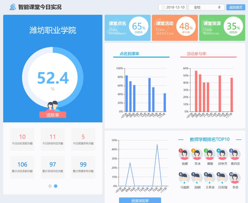 公司负责人主要从智慧课堂在课前、课中、课后三个时间段的应用进行了培训,课前以知识树、题库、微课搭建教学资源,课中手机点名、头脑风暴、课堂抢答、随堂测验、作业任务、调查问卷等一系列教学手段应用,课后进行随堂评教、授课日志、课堂报告、教学分析等教学质量数据分析,为教师的自我教学诊断与改进提供数据支撑。智慧课堂系统提供了3种资源搭建方式、4种点名方式,8种课堂交流模式及几十个教学指标的分析,应用涵盖整个课堂教学过程,能够充分激发学生学习参与度和积极性,有效提升课堂教学质量。
