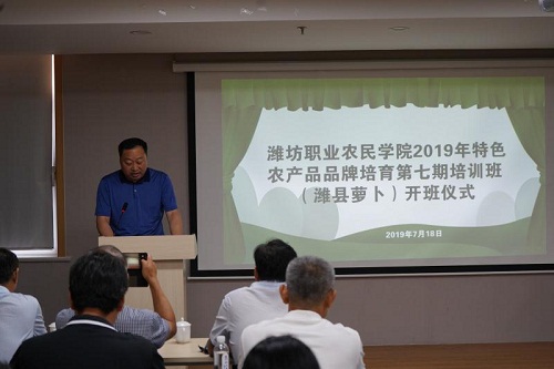 7月18日,由潍坊职业农民学院、潍坊市农业农村局、潍坊市萝卜协会联合组织举办的2019年特色农产品品牌培育第七期培训班(潍坊萝卜)顺利结束,来自寒亭的农民合作社负责人、现代农业产业园负责人、萝卜种植大户等66名学员参加了本次培训,潍坊职业农民学院负责人、潍坊市农业农村局分管负责人、潍坊市萝卜协会秘书处负责人分别讲话并致辞。