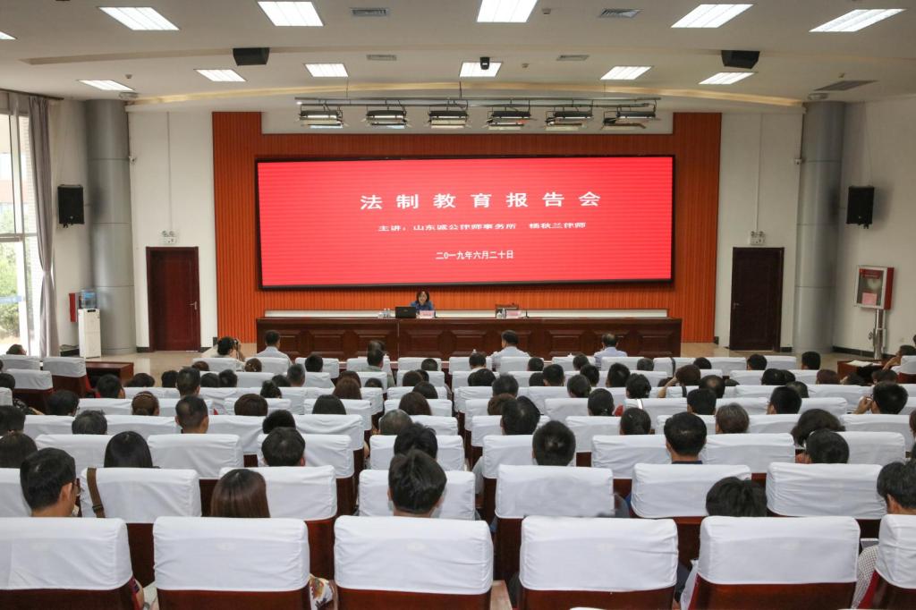 6月20日下午,学院法制教育报告会在滨海校区清泽楼报告厅举行。山东诚公律师事务所主任杨秋兰律师作题为“校园常见的犯罪与预防”专题报告。副书记宋桂言主持报告会。纪委书记郭晓辉、副院长谭明出席,学院副科级以上干部、各二级学院骨干教师、辅导员、班主任代表200余人参加报告会。