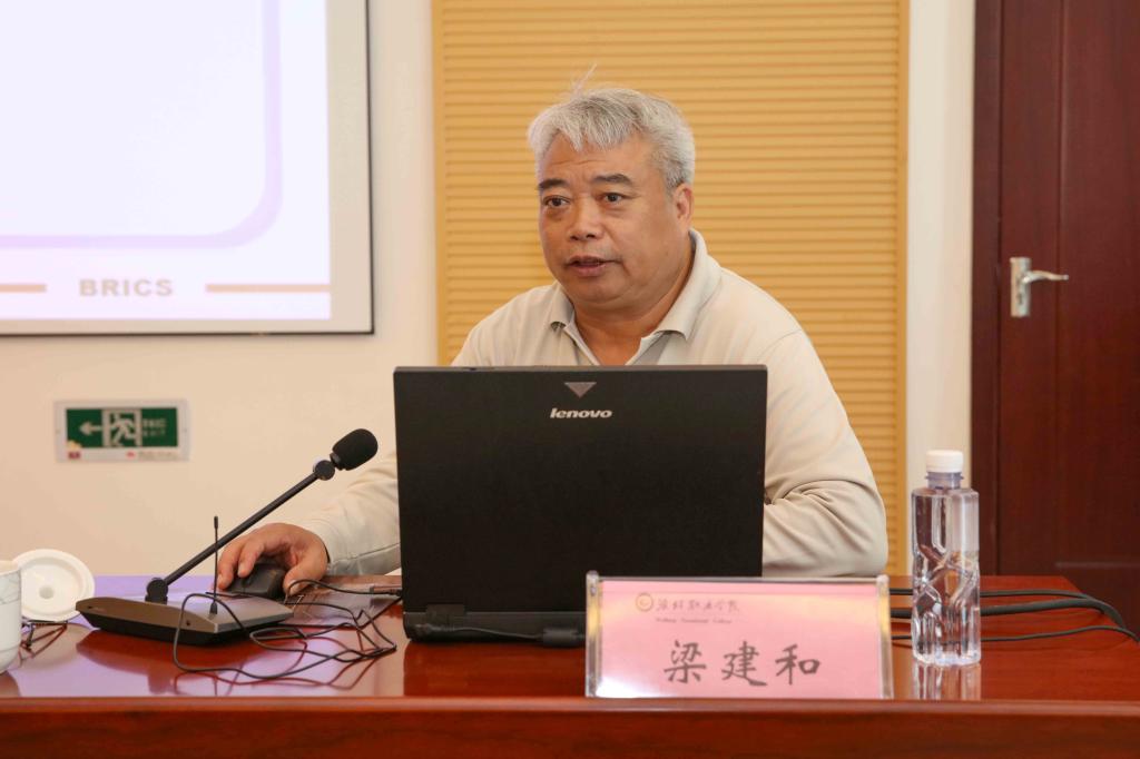 6月5日-6月6日上午,2019“一带一路”暨金砖国家技能发展与技术创新大赛综合职业能力测试模块裁判员培训会在bv伟德清泽楼312会议室召开。北京师范大学赵志群教授,一带一路暨金砖国家技能发展国际联盟副理事长、北京企学研教育科技研究院院长刘辉,一带一路暨金砖国家技能发展与技术创新大赛技术委员会副主任、广西机械工程学会副理事长梁建和教授,学院院长王家爱,副院长李瑞昌,教务处、机电工程学院主要负责同志及专家、裁判人员、教师、企业代表50余人参加了会议并进行了研讨。