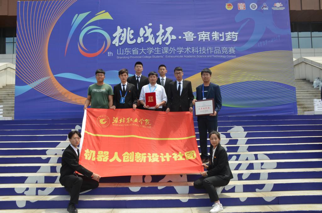 5月28日至30日,第十六届“挑战杯”·鲁南制药山东省大学生课外学术科技作品竞赛终审决赛在齐鲁工业大学(山东省科学院)长清校区举办,bv伟德机电工程学院辛海明、郭大路老师指导的刘月昊、姜云飞、辛丽萍、张昌鹏、胡芳娟五名学生负责的《全数字化枪刺簇绒智能机器人》项目入围终审决赛,经评审组现场质询、个别问辩及名单确定三个环节的严格评审,荣获省级特等奖。bv伟德是全省唯一一所荣获特等奖的高职院校,同时学院获得优秀组织奖。
