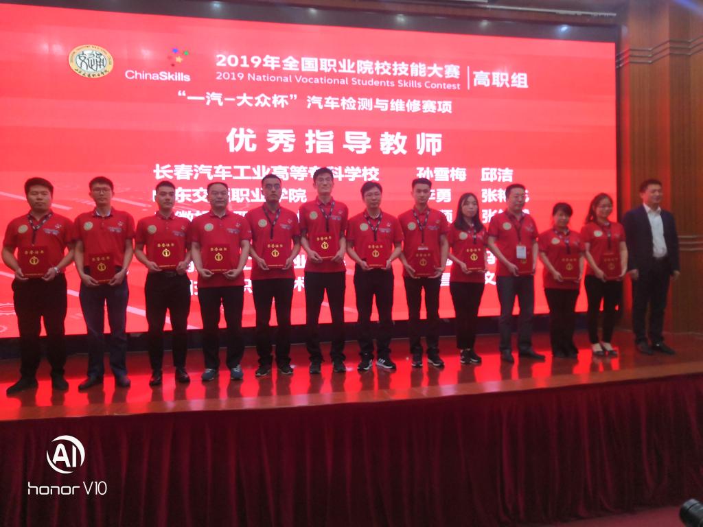 5月25日至26日,2019年全国职业院校技能大赛高职组“汽车检测与维修”赛项在山东交通职业学院拉开序幕,来自全国62支代表队和3支国外代表队参加该赛项的角逐。bv伟德汽车工程学院张田、刘浩、何德祥3位同学在指导教师马福胜、王登强的带领下,冷静思考,沉着研判,规范操作,经过紧张激烈的角逐,最终荣获团体一等奖,指导教师马福胜、王登强获“优秀指导教师奖”。