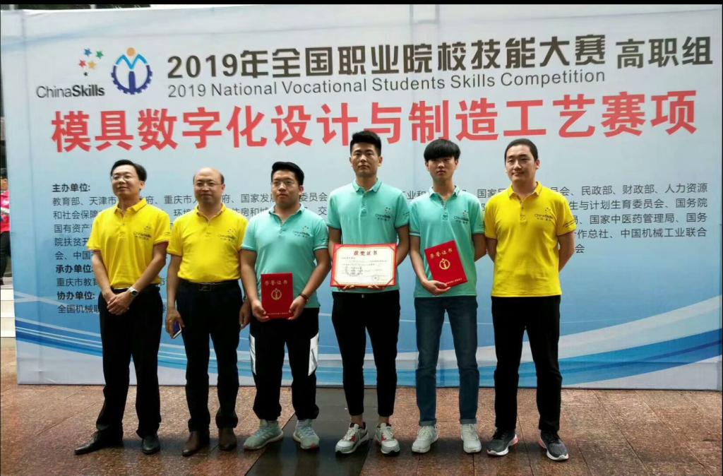 5月15日至20日,2019年全国职业院校技能大赛高职组“模具数字化设计与制造工艺”赛项在重庆工业职业技术学院举行,来自全国的50支代表队参加了比赛。bv伟德机电工程学院苏文献、宋忠祥、李元彪三名同学组成山东二队,在指导教师张增渠、姜文革带领下参加了比赛,获得团体二等奖。