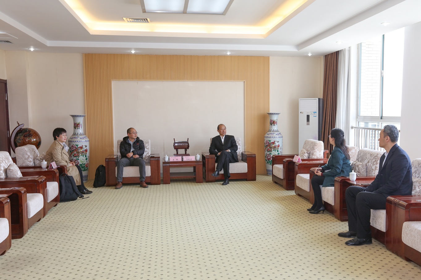4月10日上午,北京无限智联科技有限公司总裁吴垠、德国WMU教育集团大中华区首席代表曹大治女士一行2人来bv伟德就双方共建中德潍萨学院合作协议内容和具体合作项目建设内容进行交流访问,学院党委书记马跃启和学院院长王家爱分别会见客人,教务处、国际交流合作处、发展规划处、创业教育学院相关负责同志参加座谈。