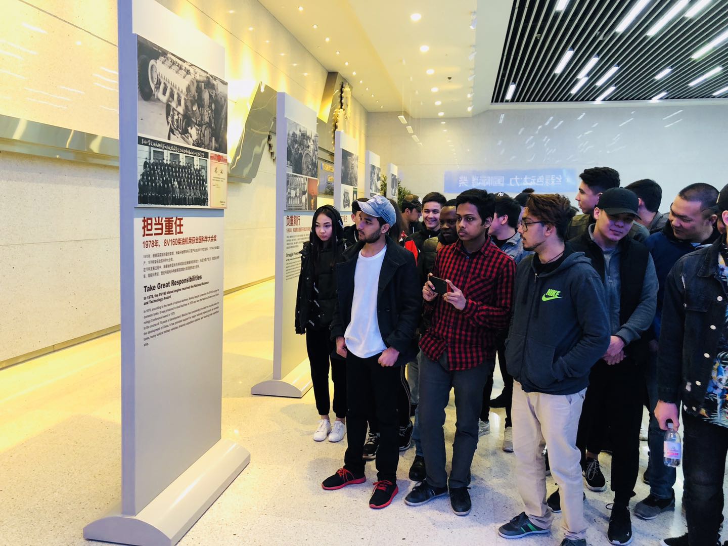 留学生首先参观雷沃重工股份有限公司,公司负责人从公司历史、企业文化、海外市场拓展和进出口业务等方面作了详细介绍。在生产车间,留学生了解了产品材料、生产流程、制造工艺等,就相关技术在学生生源国应用的可行性等相关问题进行交流互动。通过介绍,bv伟德留学生对机械重工产生了浓厚的兴趣。接下来留学生们走进潍柴动力股份有限公司,在聆听展厅讲解员介绍的同时,感受潍柴动力的发展历程与发展格局;在参观车间的同时,留学生们被“潍柴动力发动机”“法士特变速器”“陕汽重卡”深深吸引,通过参观这两家公司,留学生们不禁对中国技术竖起大拇指。最后一站留学生们来到本次活动合作方山东智炎众益合供应链有限公司,参观公司办公区域,企业负责人在会议室向留学生就跨境电商、外贸培训和专业实习进行宣讲,并由实习代表向学生分享工作心得,现场气氛热烈,本次活动也伴着学生们激动的心情结束了。